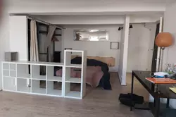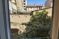 Marseille 13005, la Timone, rue Sainte Cecile, Location appartement meuble de type T1 de 32m², Hall, coin chambre, pièce principale, cuisine ouverte aménagée et équipée, salle d'eau et toilette, situé au 1er étage au calme donnant sur jardin.